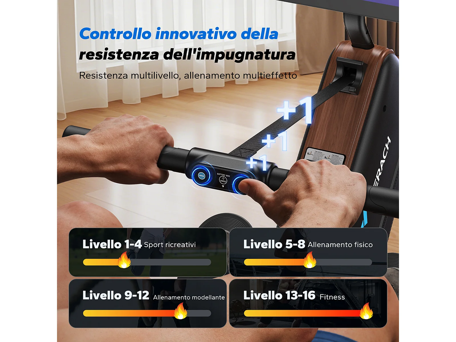 Vogatore pieghevole a doppia barra magnetica MERACH, 16 livelli di resistenza, Bluetooth, Kinomap, silenzioso e salva spazio