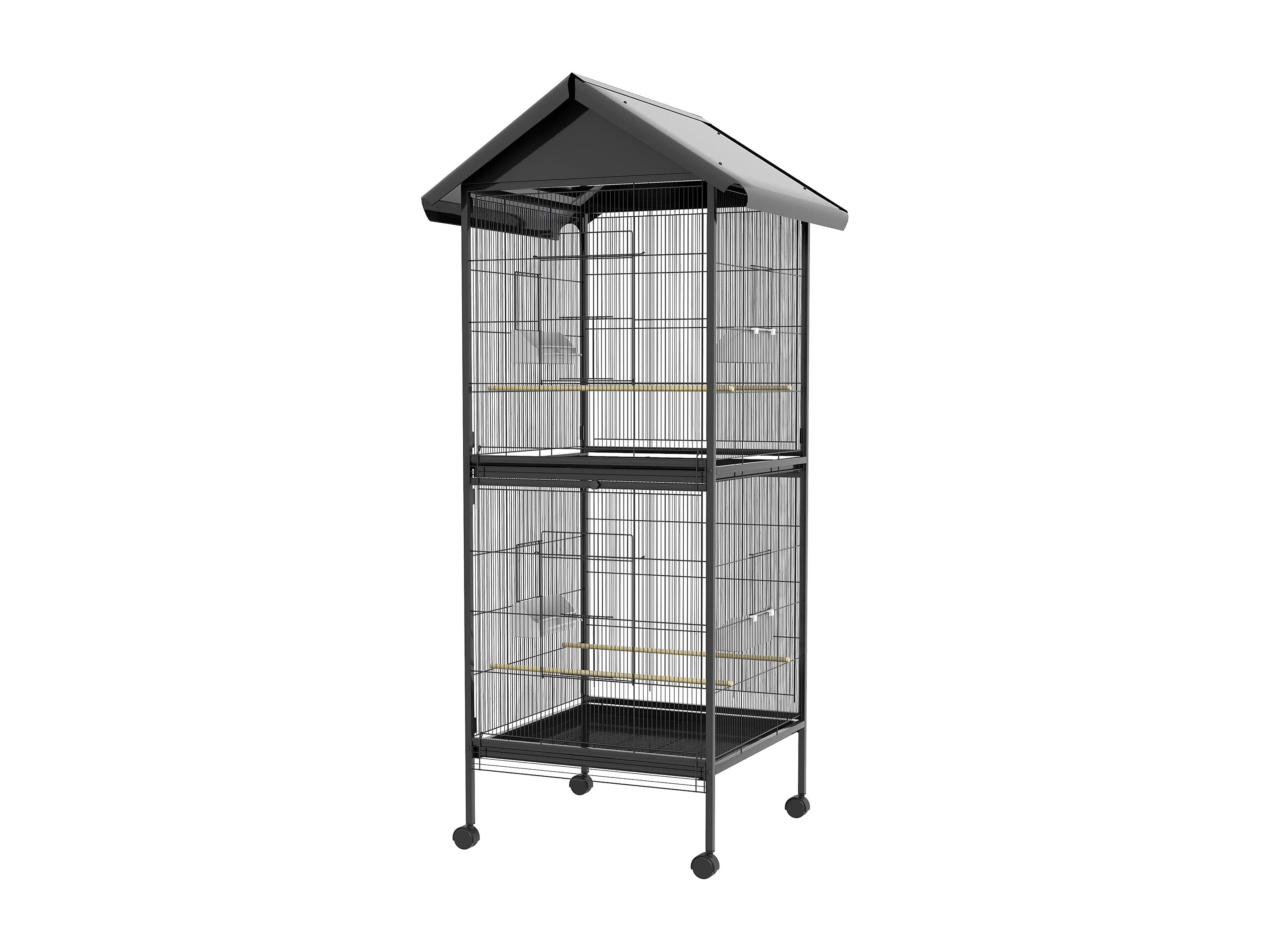 Voliera per uccelli a rotelle con vassoi estraibili e posatoi nero