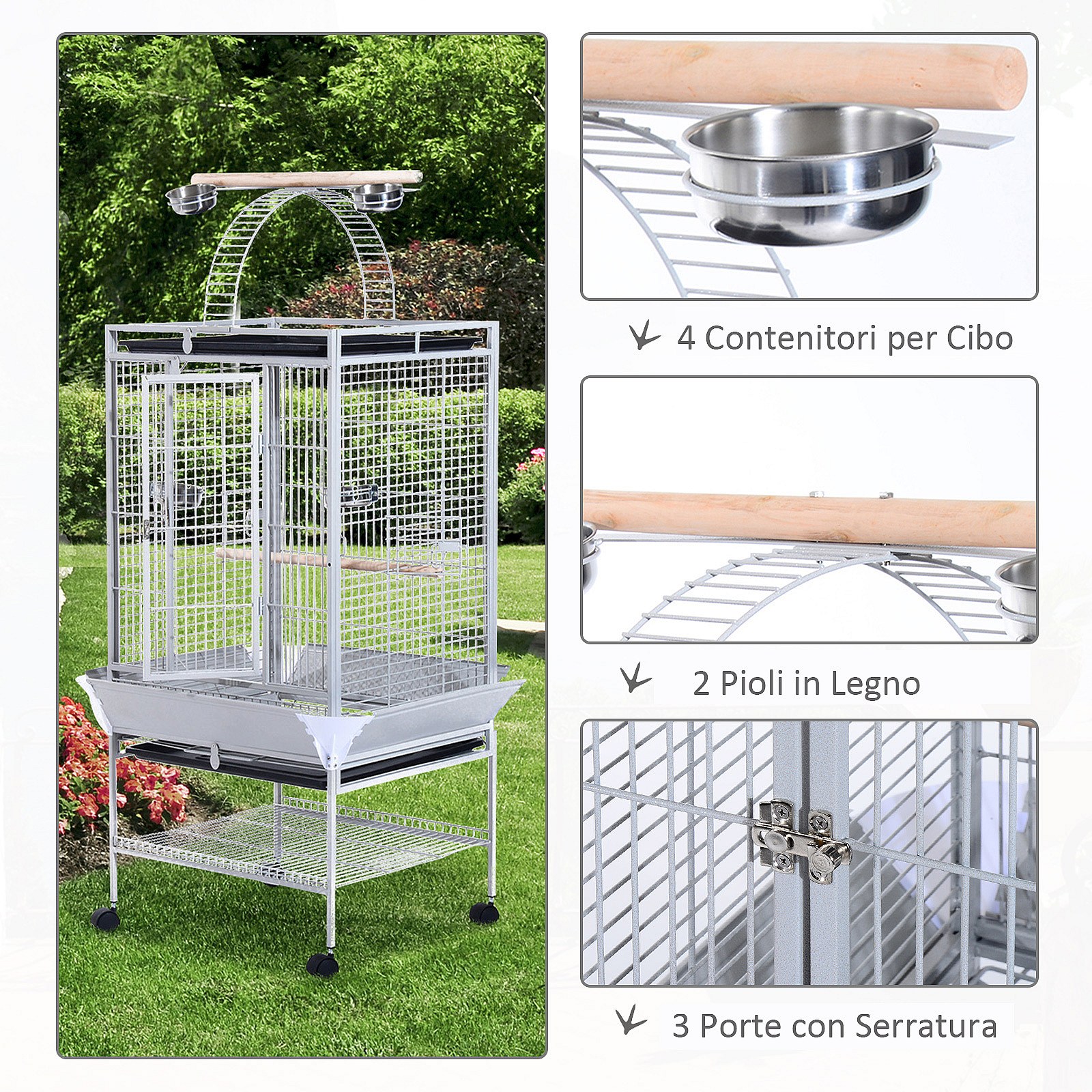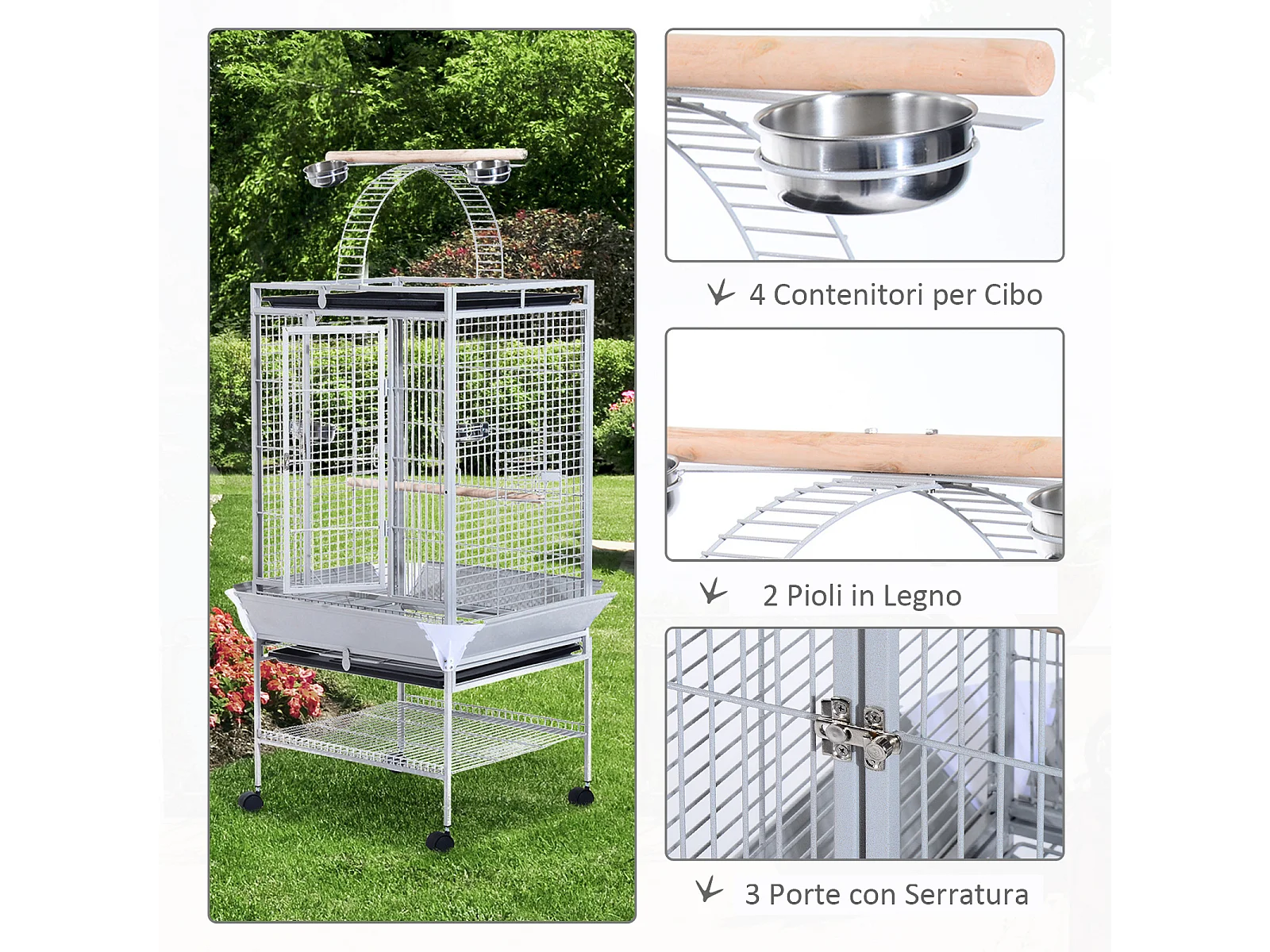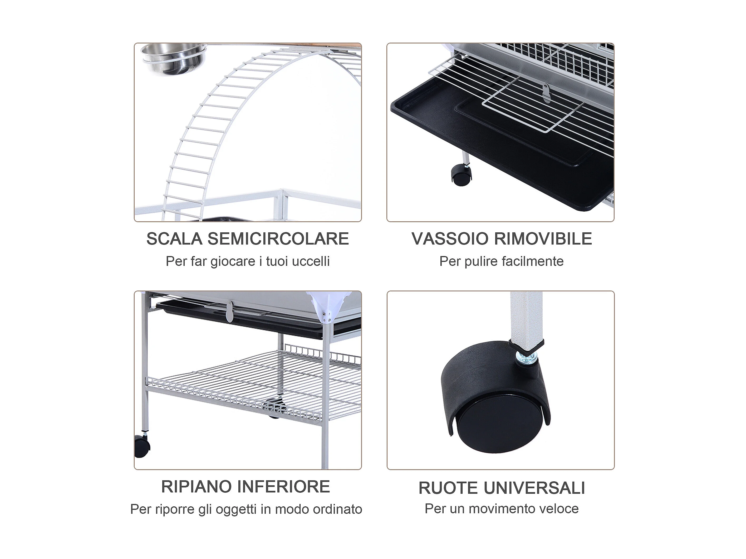 Voliera per uccelli con ruote altezza 161cm vaschette per cibo e trespoli