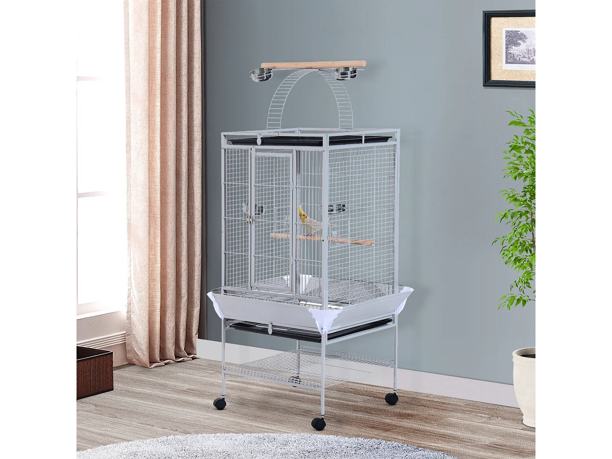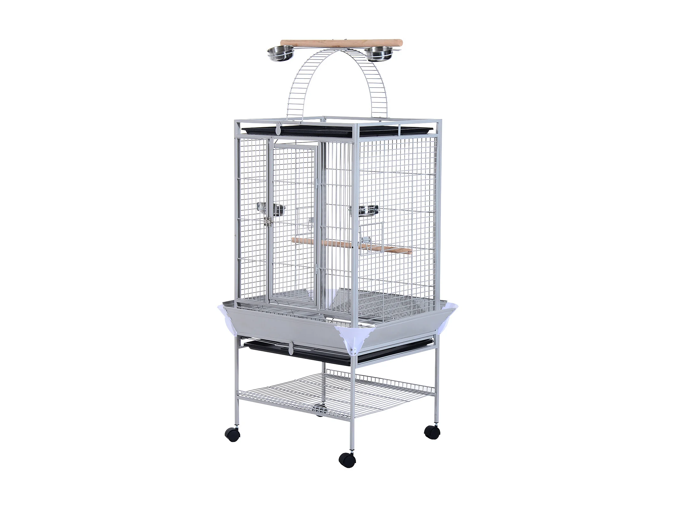 Gabbia per uccelli in acciaio con posatoi giocattoli e vassoio rimovibile