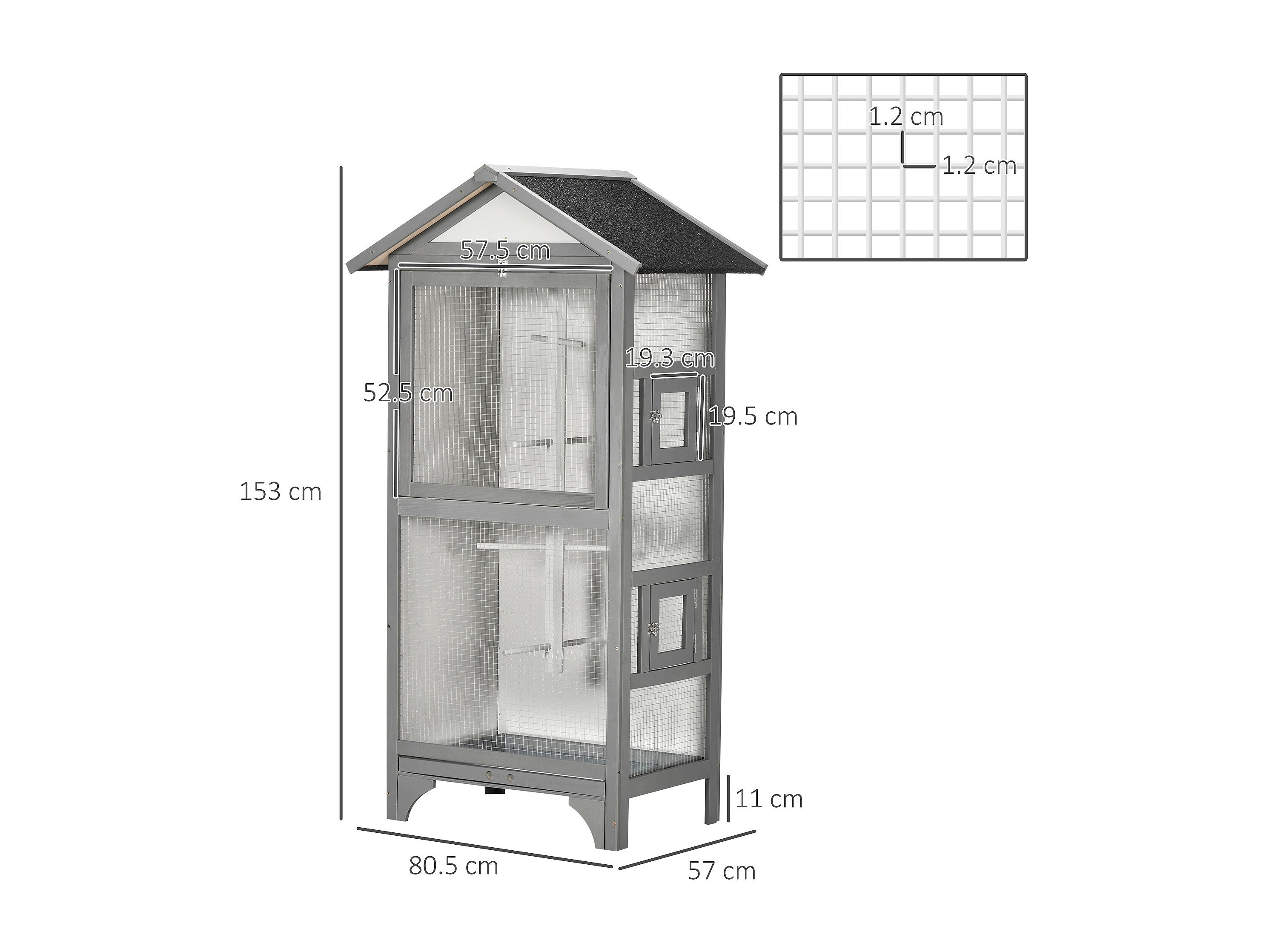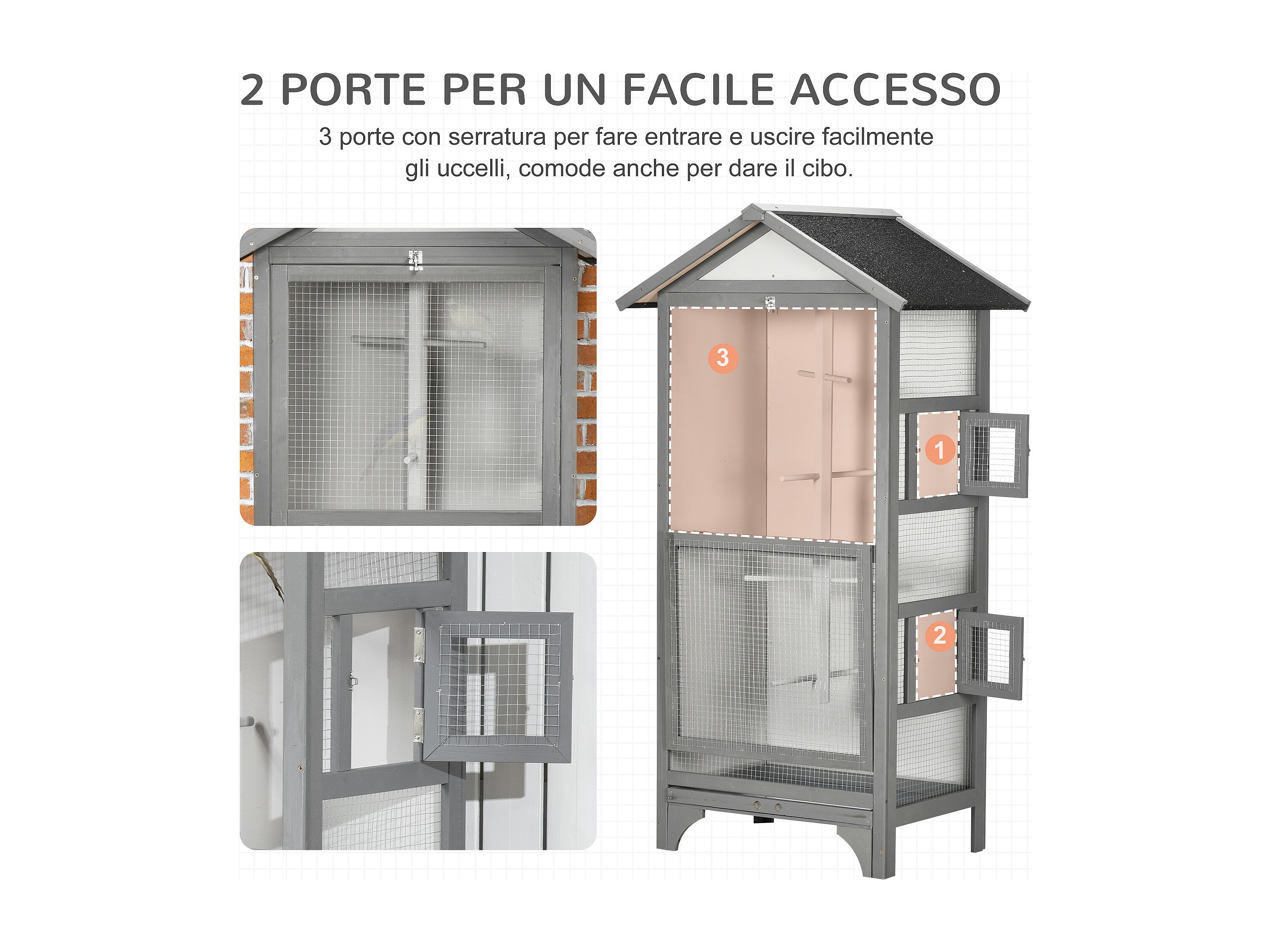 Voliera per uccellini in legno, 3 aperture 4 posatoi vassoio rimovibile