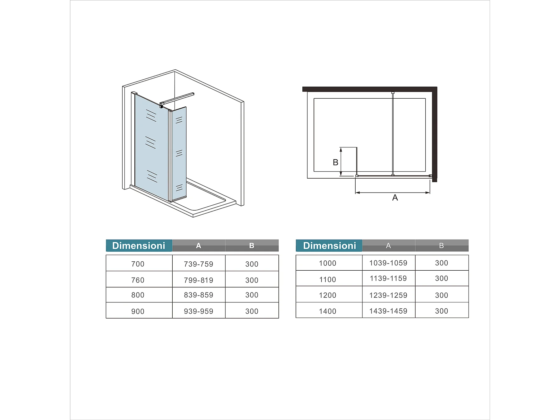 Walk In 190 cm Parete Doccia con Paretina Mobile 30 cm in Vetro 8 mm Temperato Anticalcare 100 cm Barra Stabilizzatrice da 90 cm