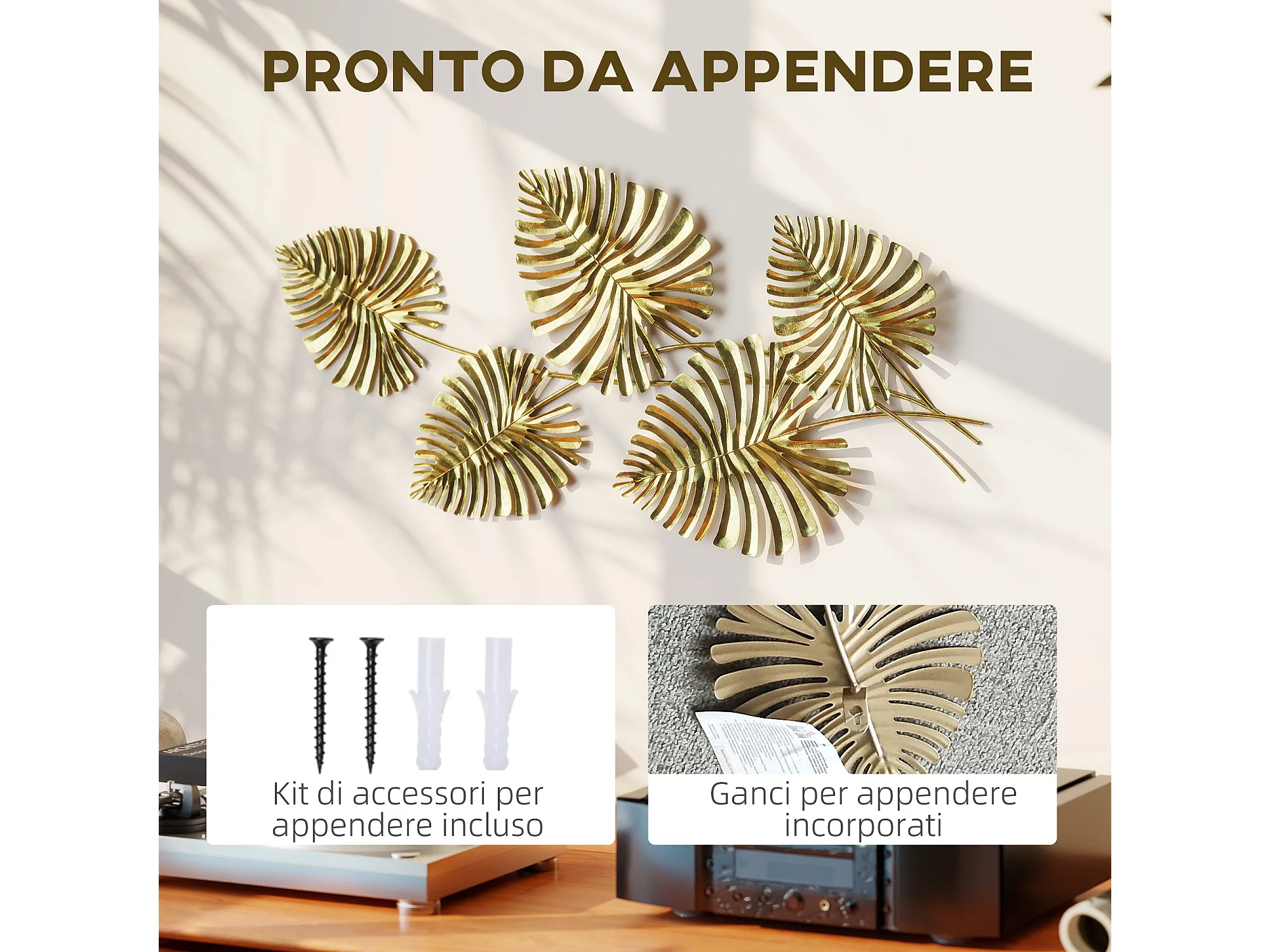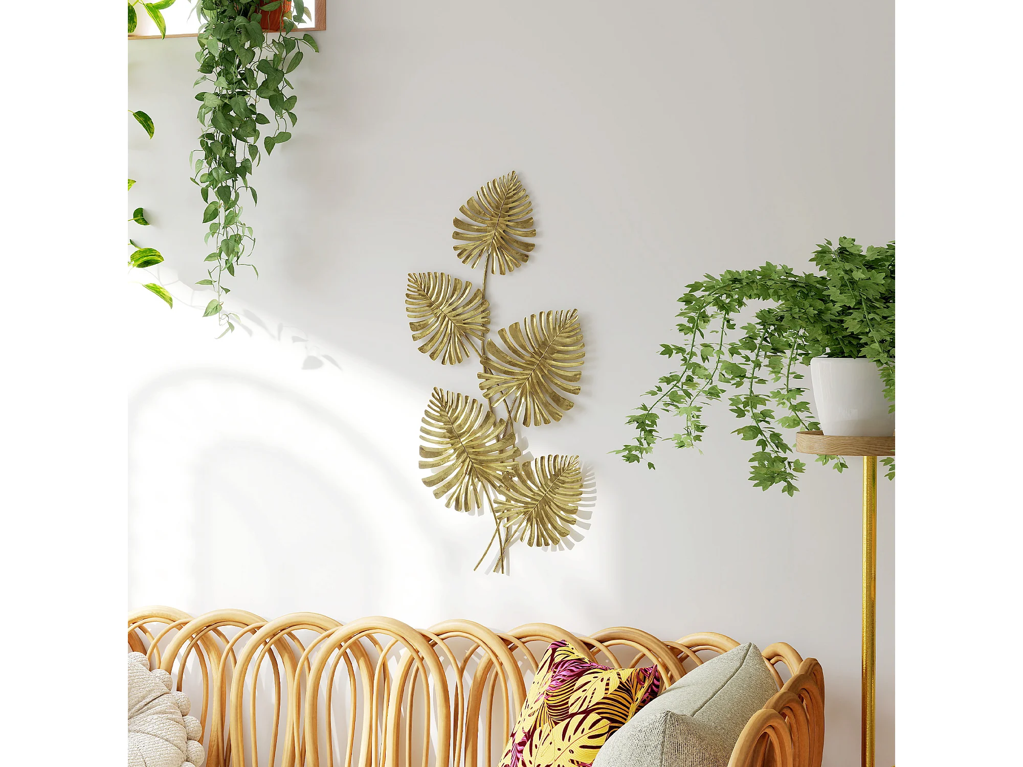 Wall art a 5 foglie di monstera in metallo dorato 83x2.5x39 cm