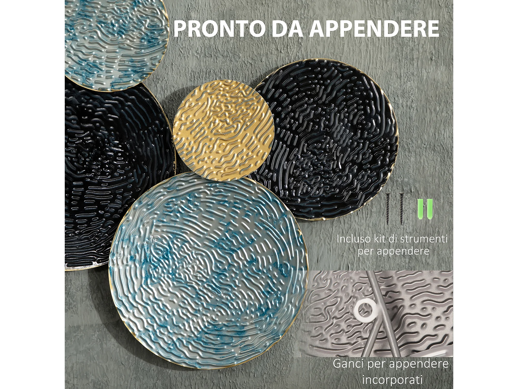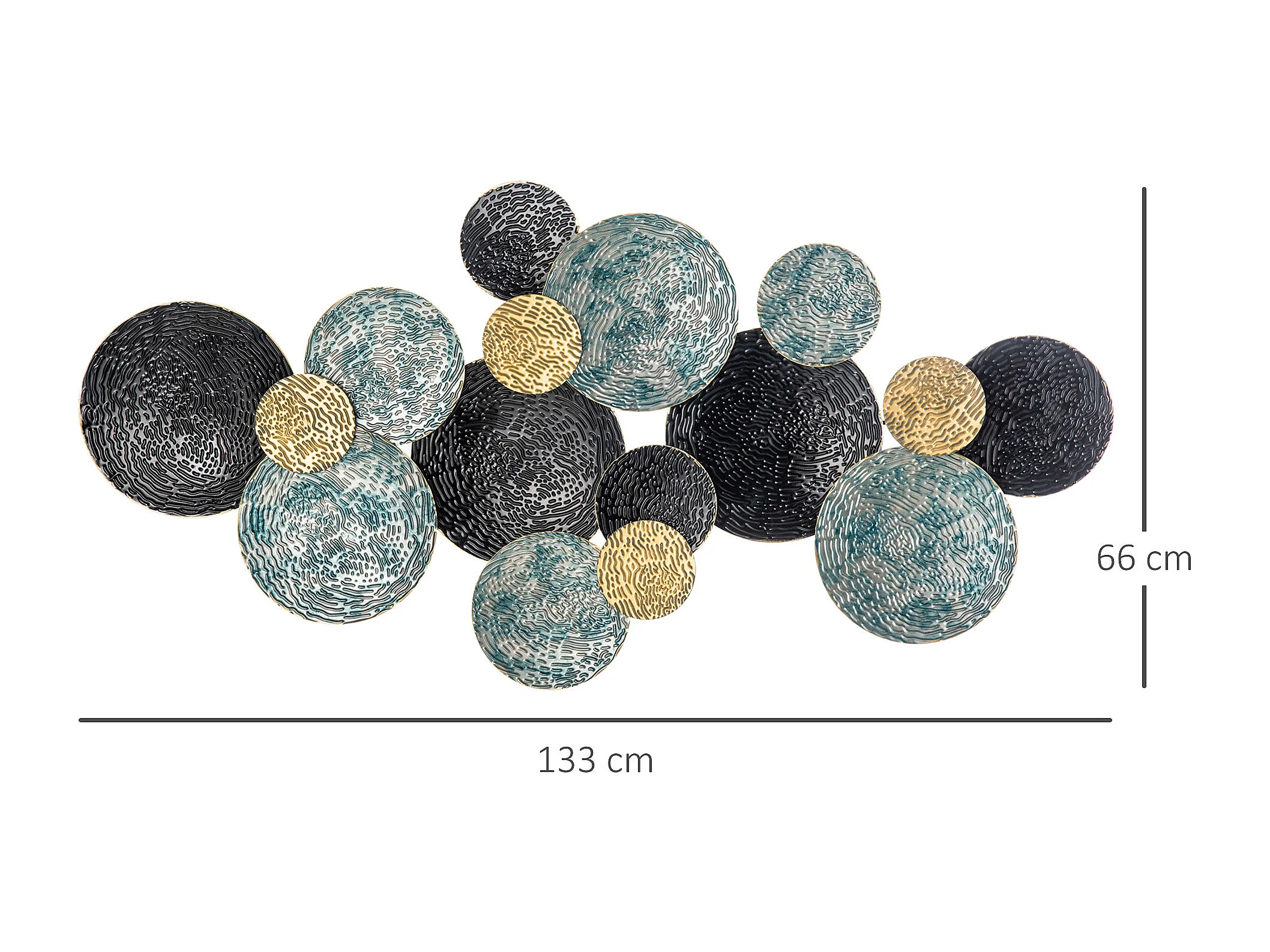 Wall art in metallo 3d a cerchi 133x66cm blu nero oro