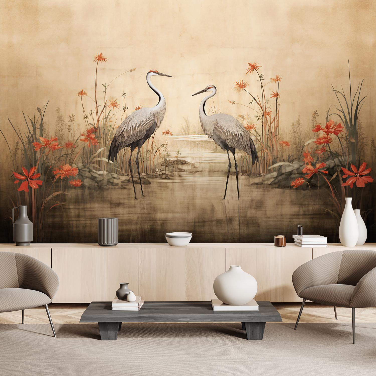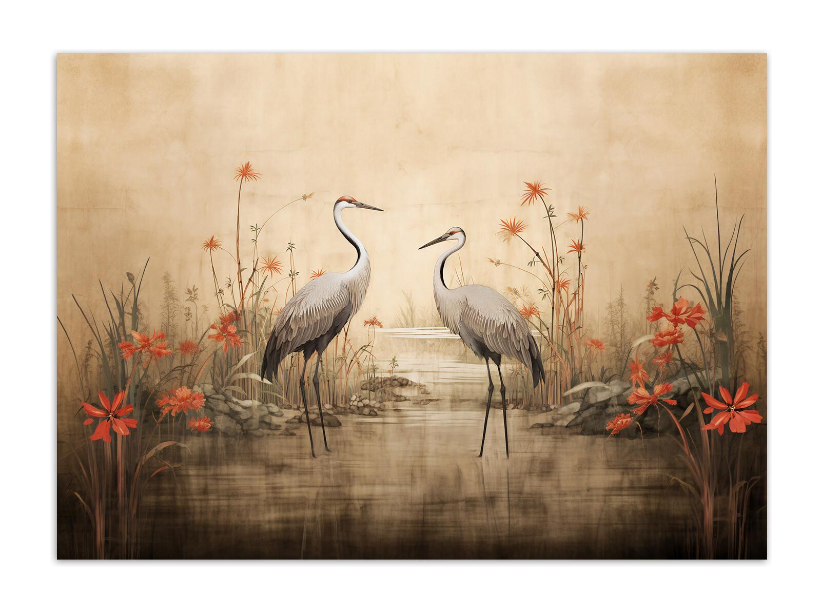 Wallpaper, Cranes by the lake - 368x254