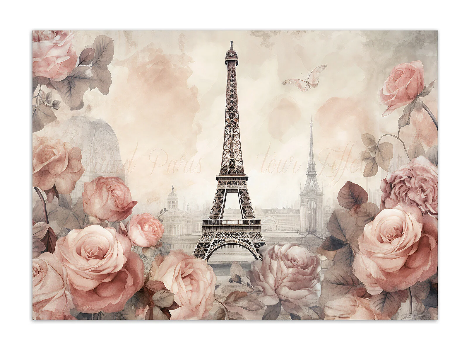 Wallpaper, Eiffel Tower Shabby Chic - 150x105