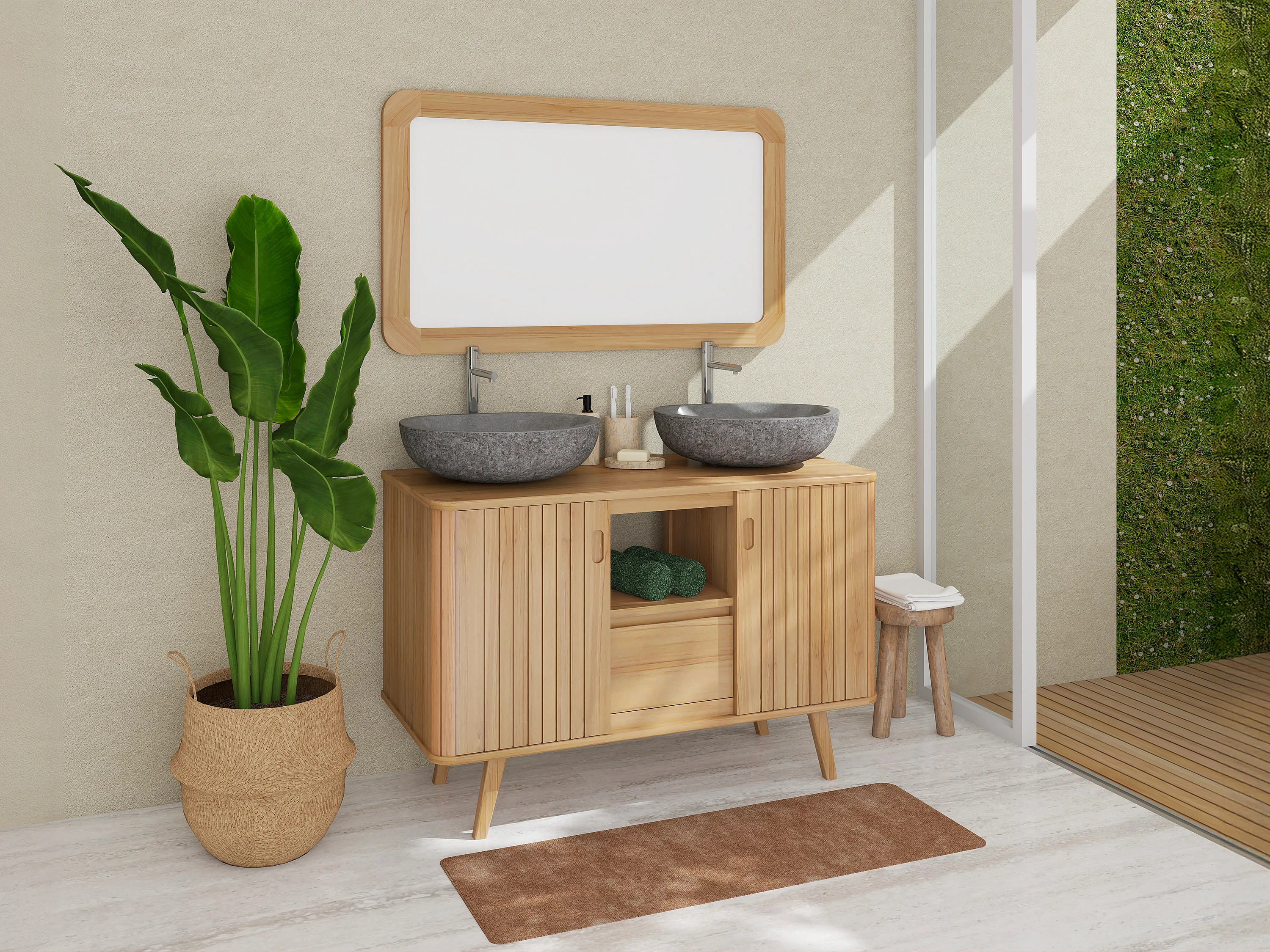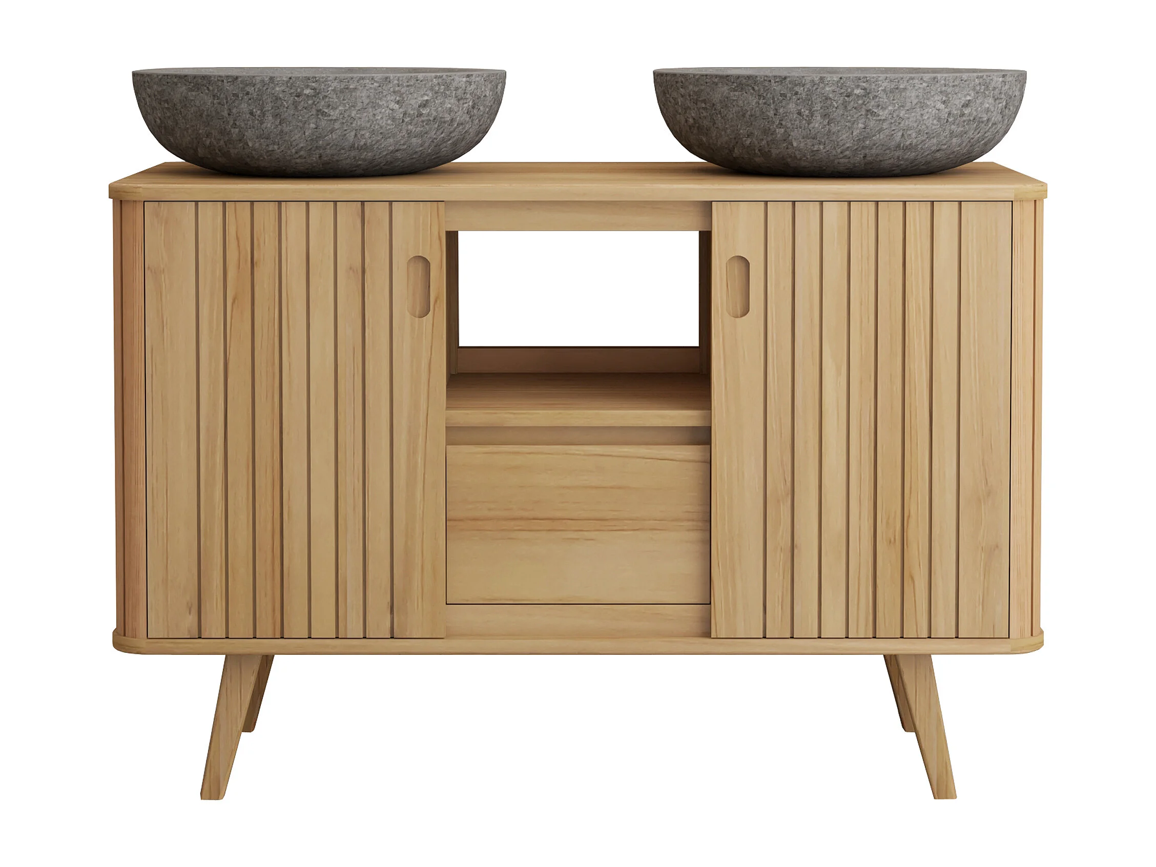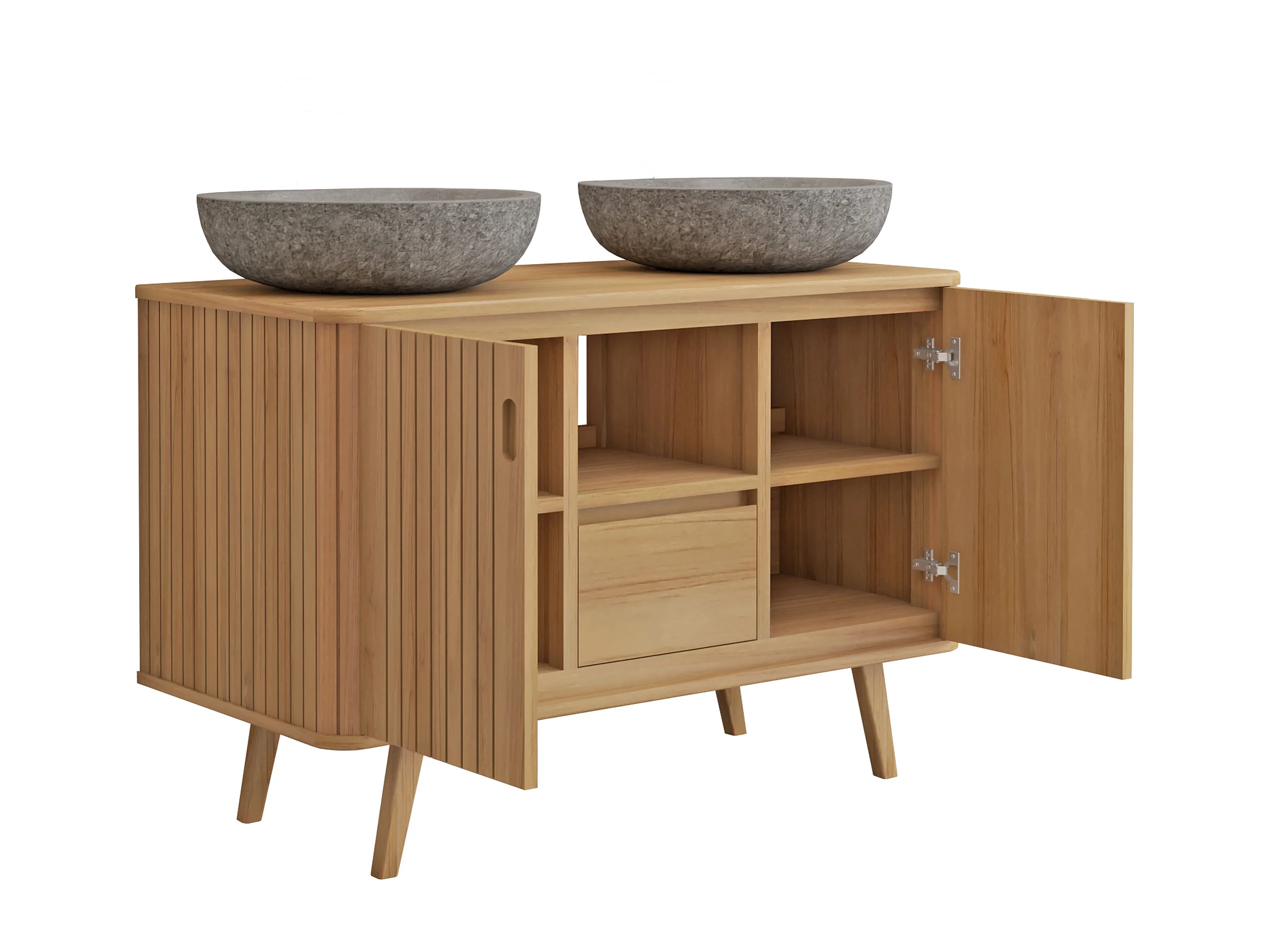 Mobile bagno con piedi in teak e doppio lavabo da appoggio grigio in pietra 120 cm - WAMENA