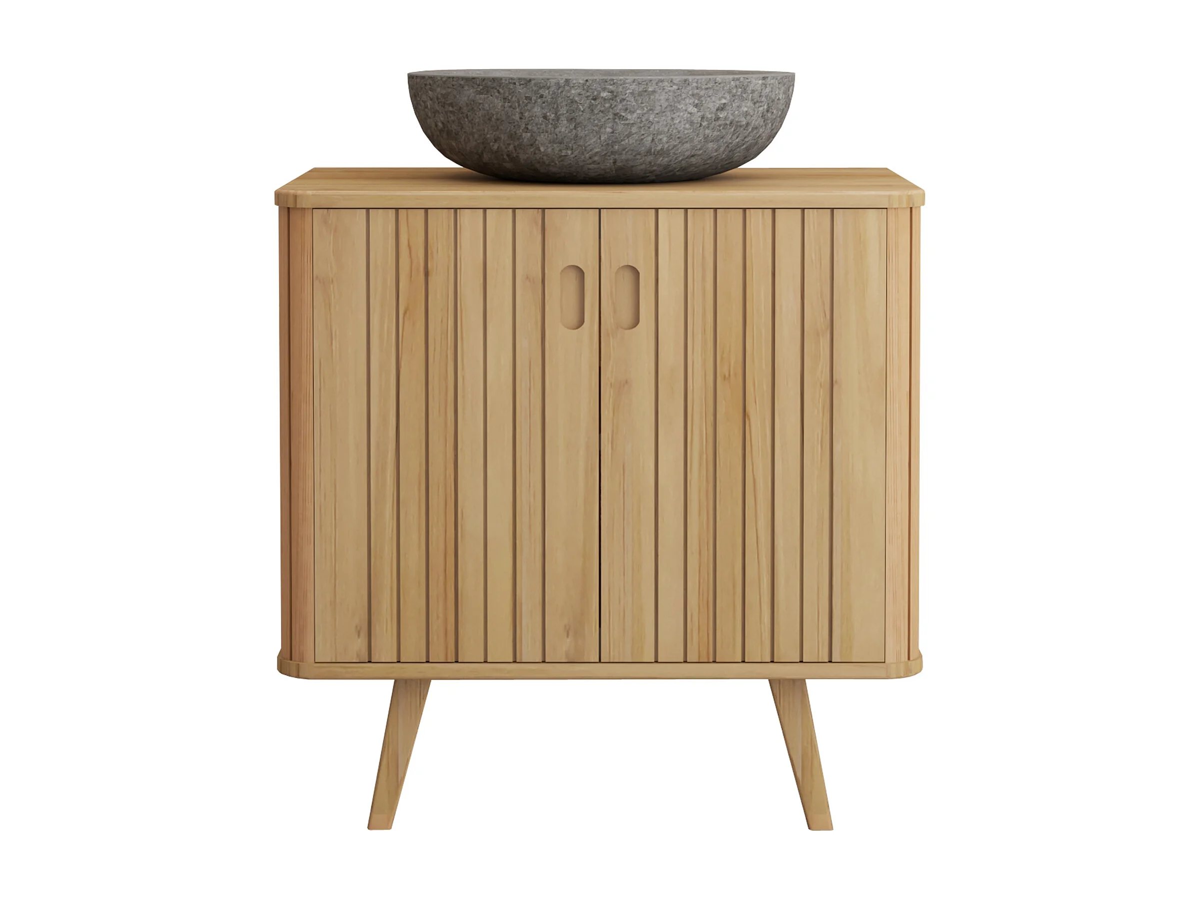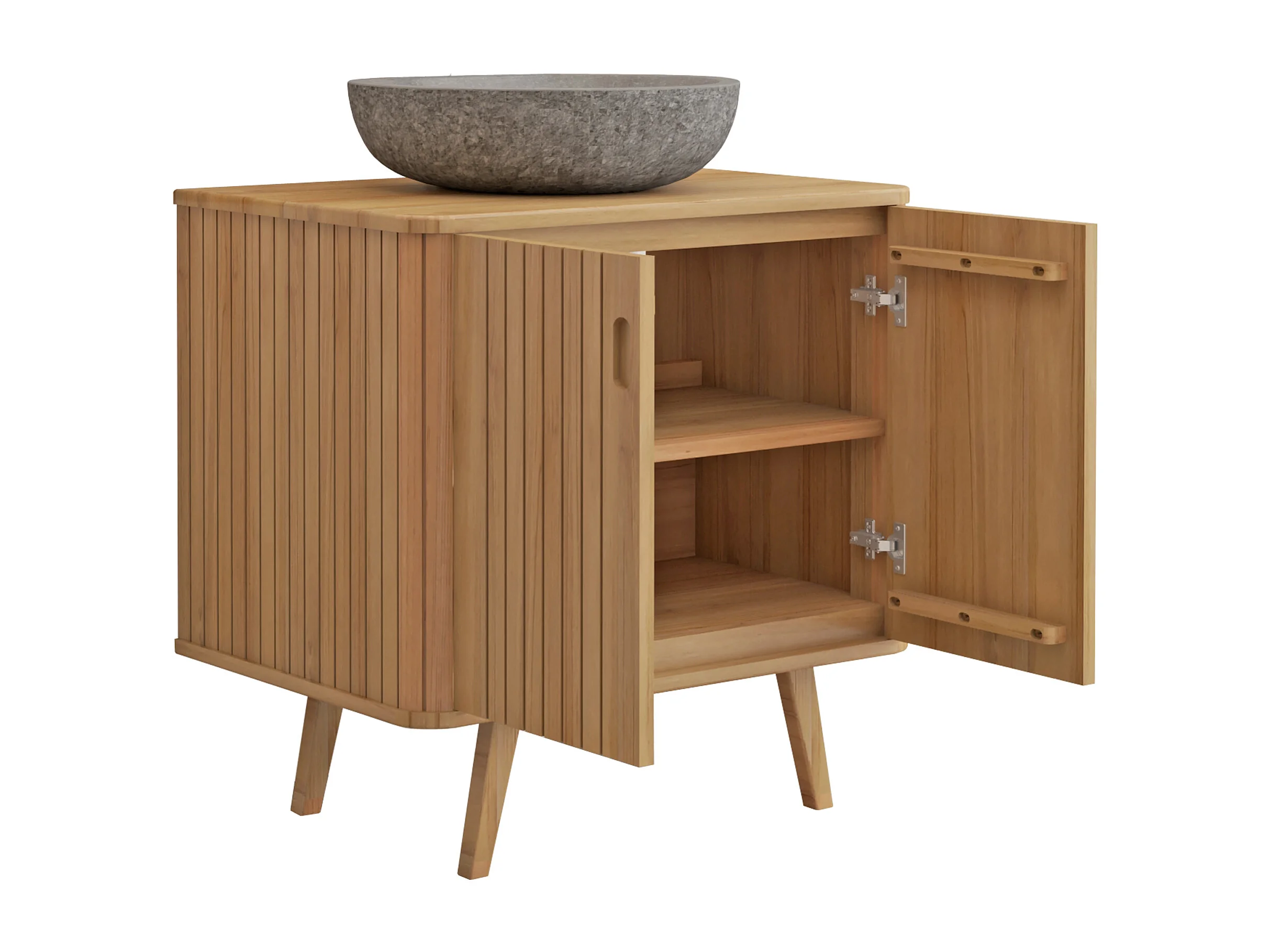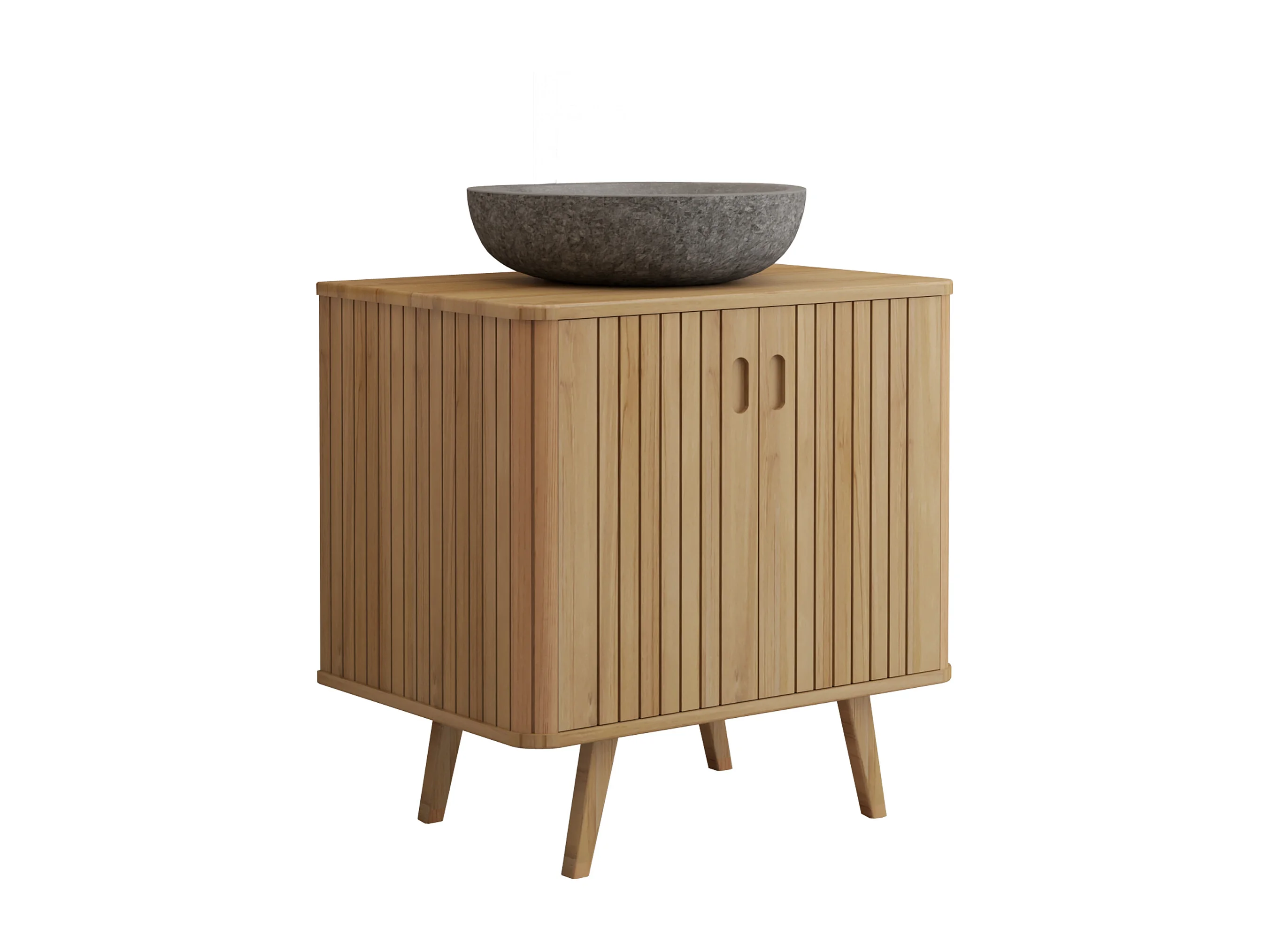 Mobile bagno con piedi in teak e lavabo da appoggio grigio in pietra 80 cm - WAMENA