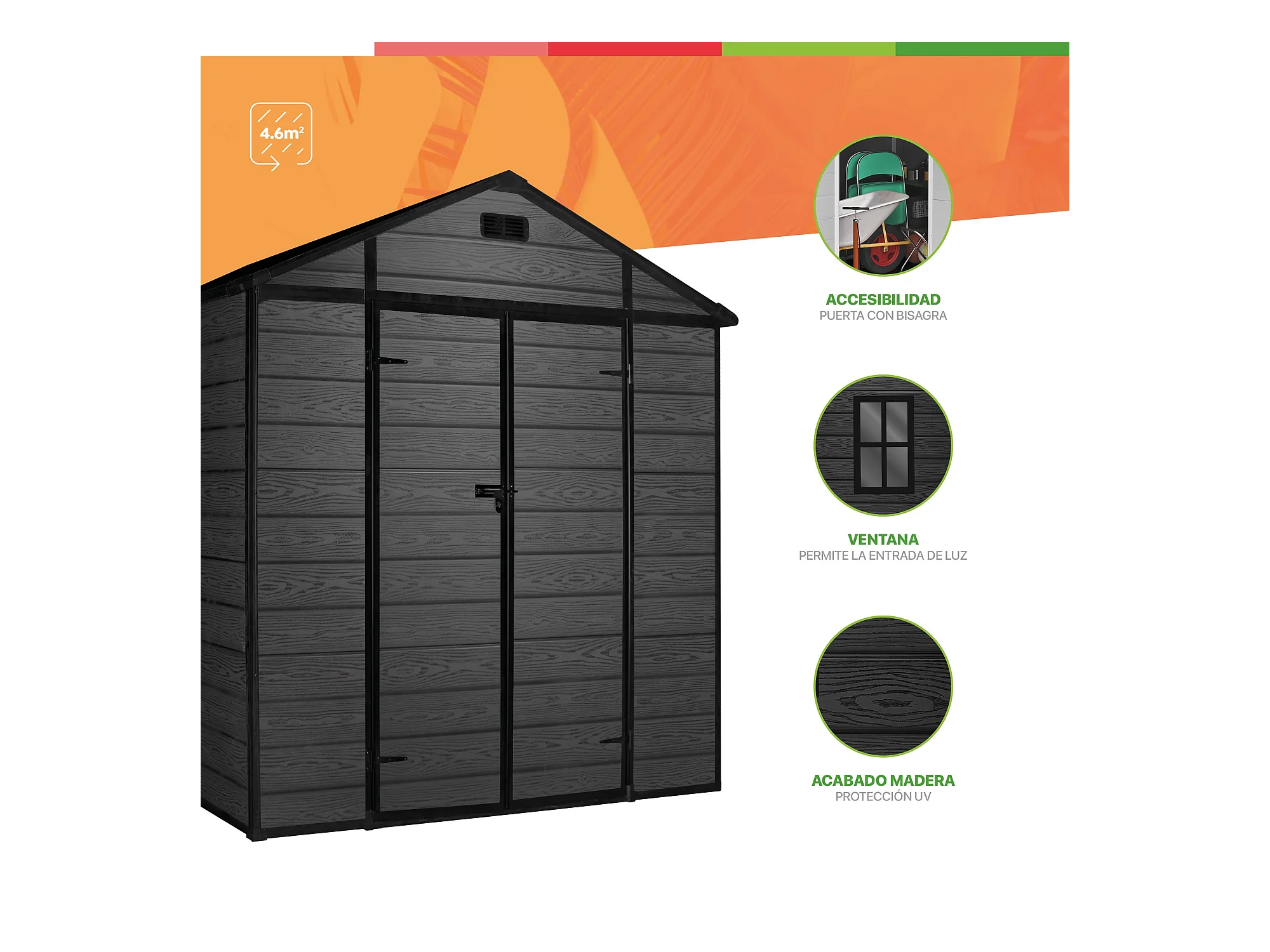 Wasabi - Riparo da Giardino in Resina Nero 4,6m² Aqua - 178x178x196cm - Riparo da giardino esterno - Porta doppia a battente - Finestra con luce naturale