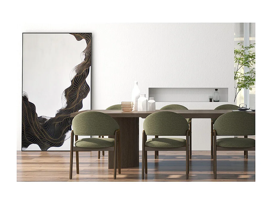 WOOL-Sedia in tessuto verde e frassino tinto noce (x2)