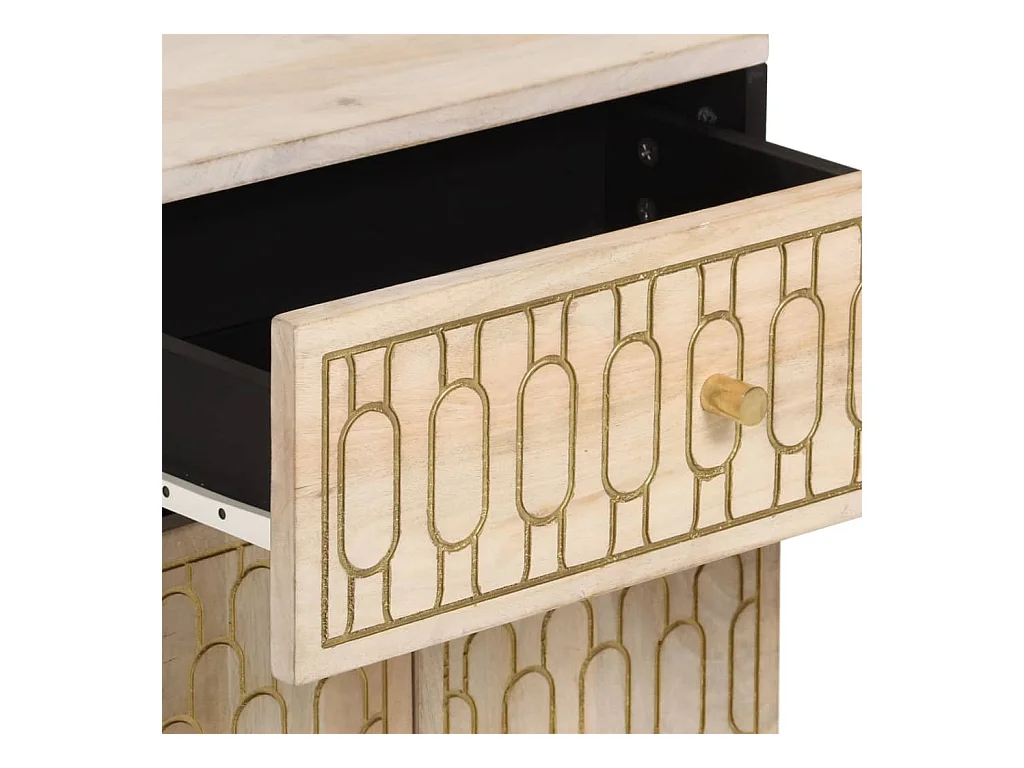 Ithren Comodino 50x33x60 cm in Legno Massello di Mango