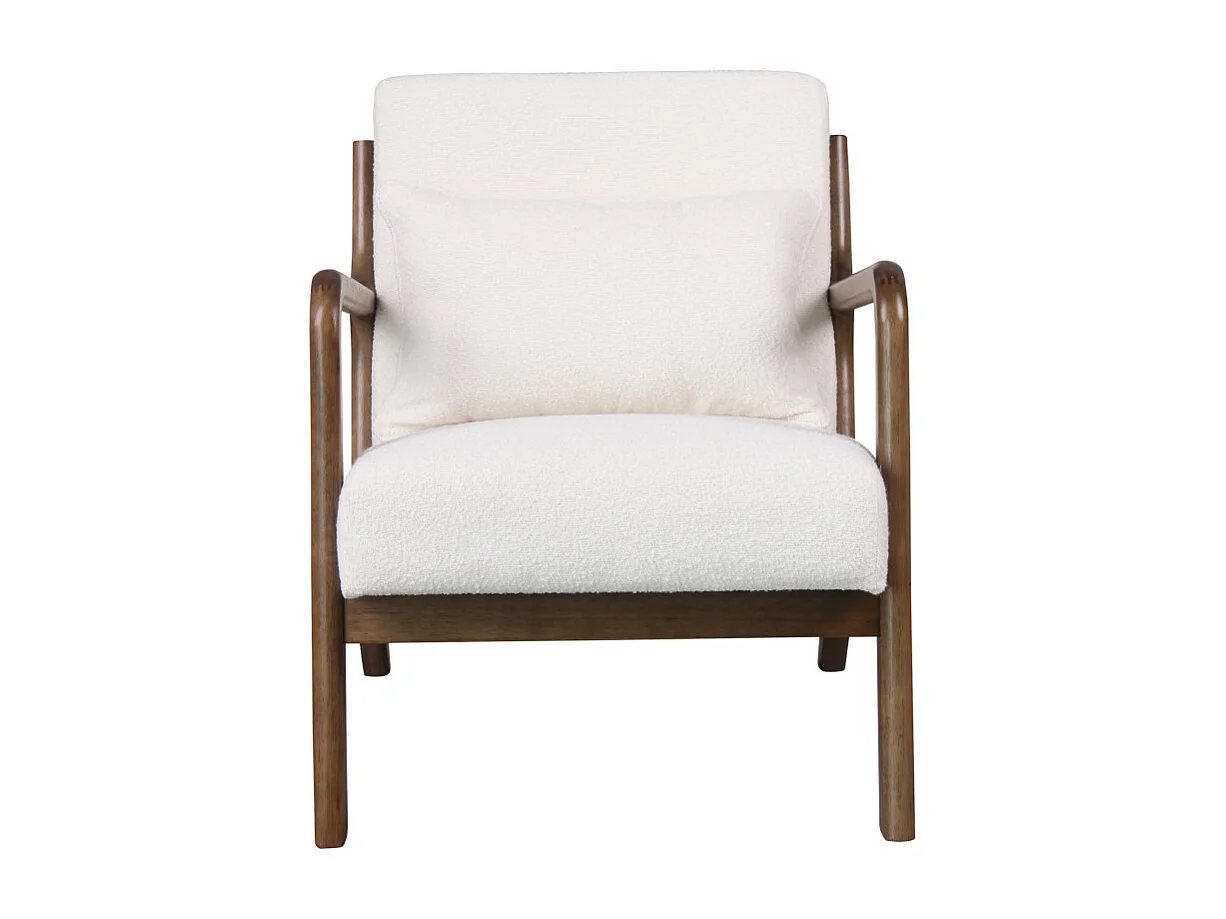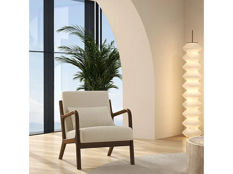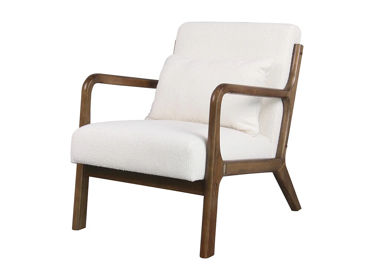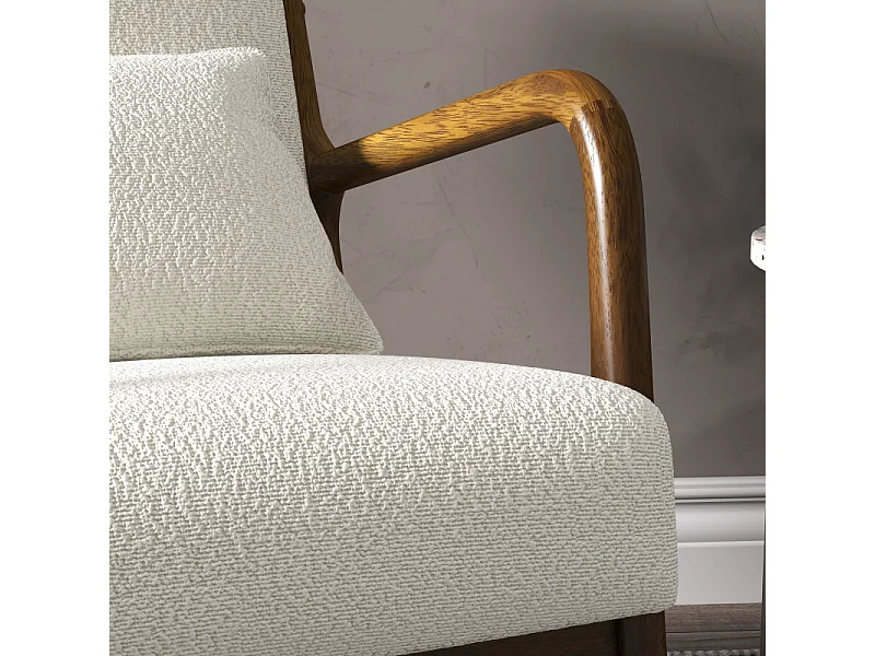 ZACK-Poltrona in tessuto Curly Ecru e legno tinto noce