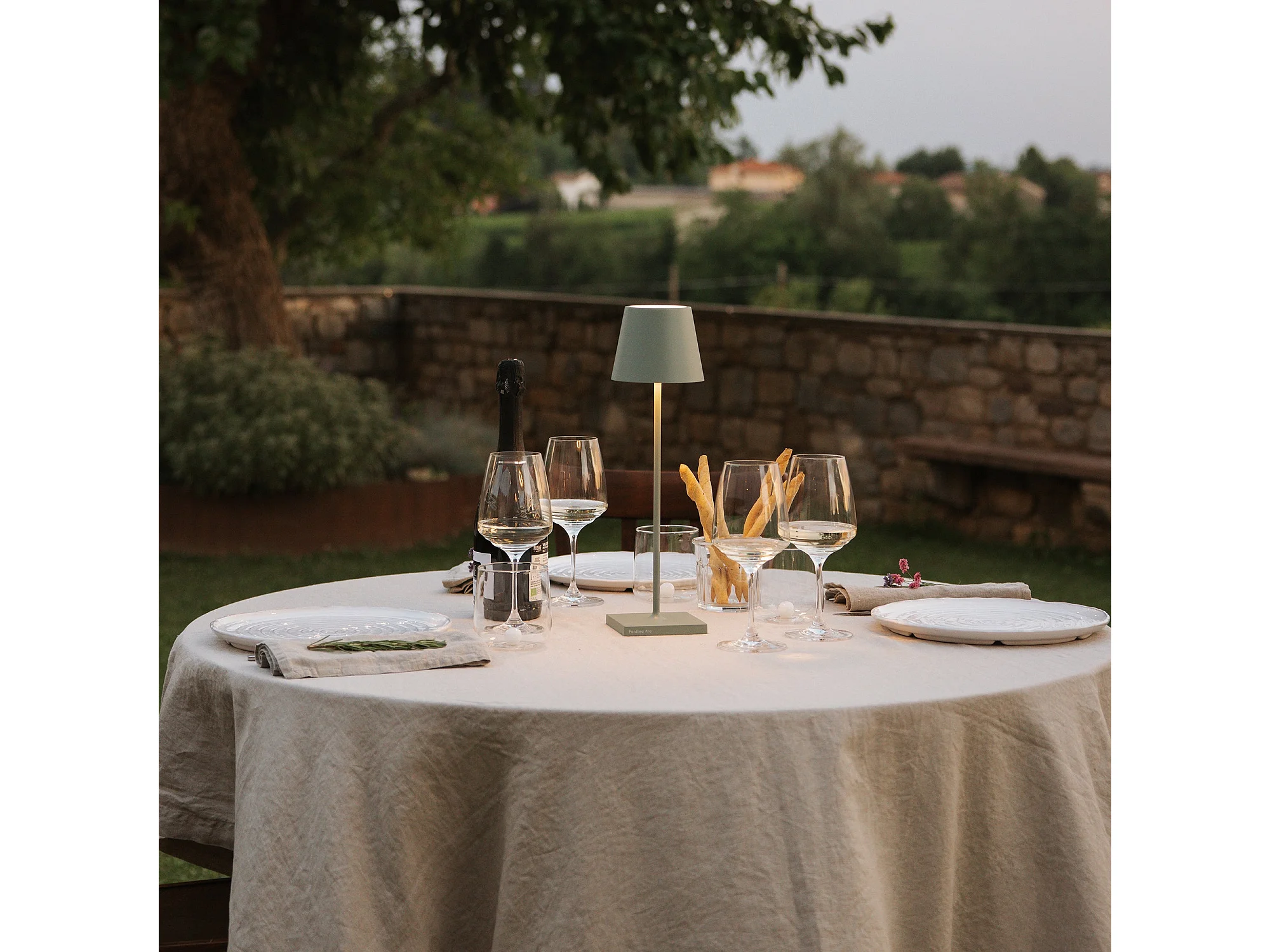 Zafferano Lampada a led da tavolo Poldina Pro Verde Salvia ricaricabile e dimmerabile con batteria fino a 12 ore. Da uso esterno IP65