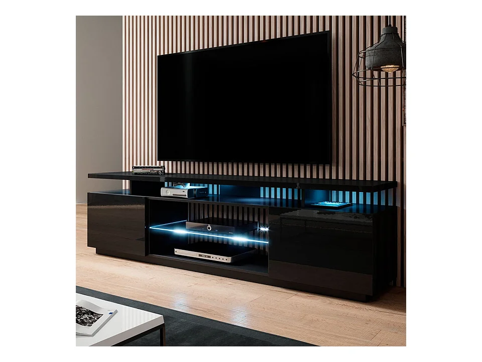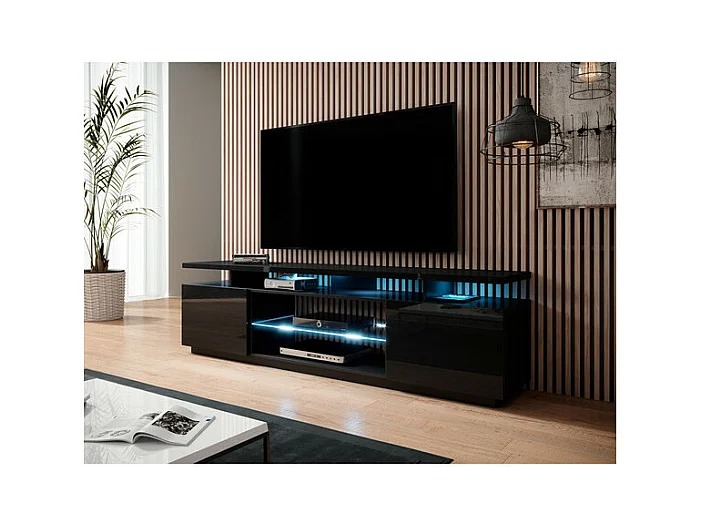 Mobile TV di design nero lucido + LED 184 cm Flow